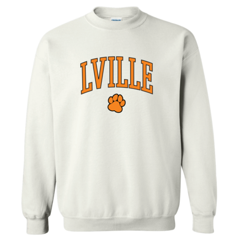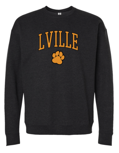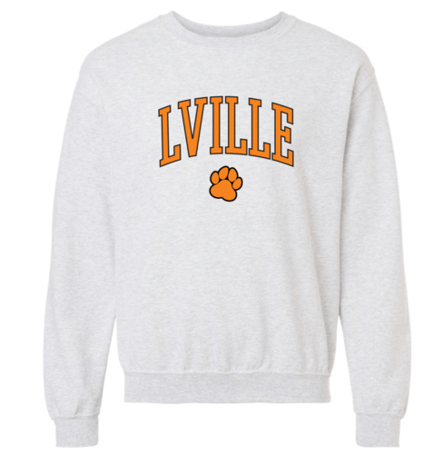 Stay cozy and show your pride in this classic LVILLE crew neck. Featuring bold orange lettering and a paw print graphic, this sweatshirt delivers a timeless, sporty look. Made with soft, comfortable fabric and a relaxed fit, it’s perfect for school days, game nights, or everyday wear. Available in multiple versatile colors to match your style. All profit will be donated to the Super Jake Foundation for pediatric cancer research. PRODUCT ARRIVES THE WEEK OF MAY 4 - MAY 8.